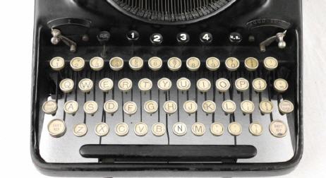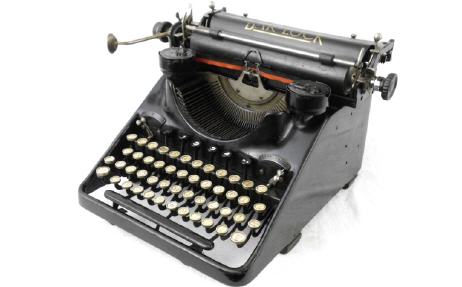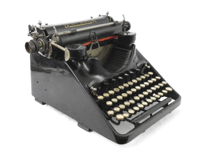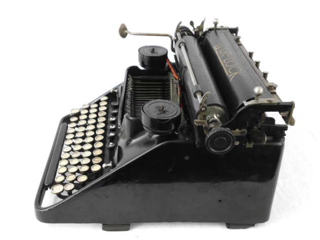 Englische Typenhebelmaschine mit eigenwilligem Aussehen.