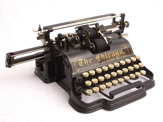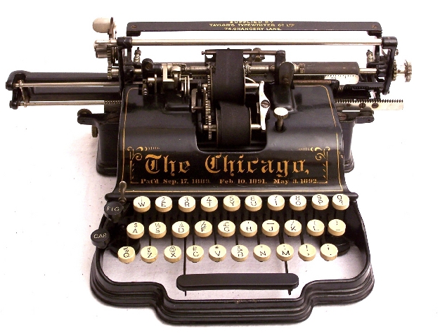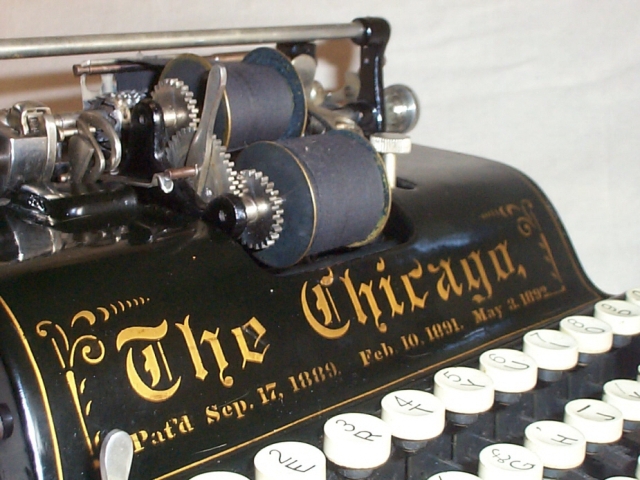 Maschinendaten: Bezeichnung: Chicago 1 Technik: Typenzylindermaschine mit Vorderaufschlag u. Dritteltastatur Besonderheiten: Druckhammer-Schreibtechnik Erscheinungsjahr: 1890 Hersteller: Chicago Writing Machine Company, Chicago, USA Konstrukteure: Samuel John Seifried, James Eugen Munson Seriennummer: 23180