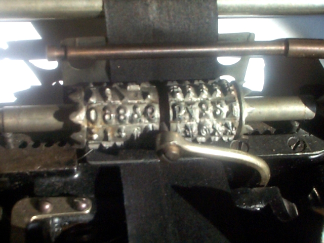 Amerikanische Typenzylindermaschine mit Druckhammer-Schreibtechnik.