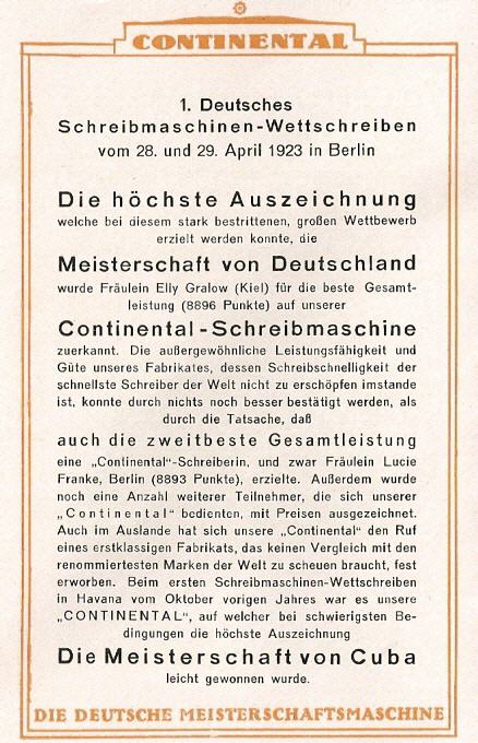 Ausschnitte aus einem Continental-Werbeprospekt um 1923.
