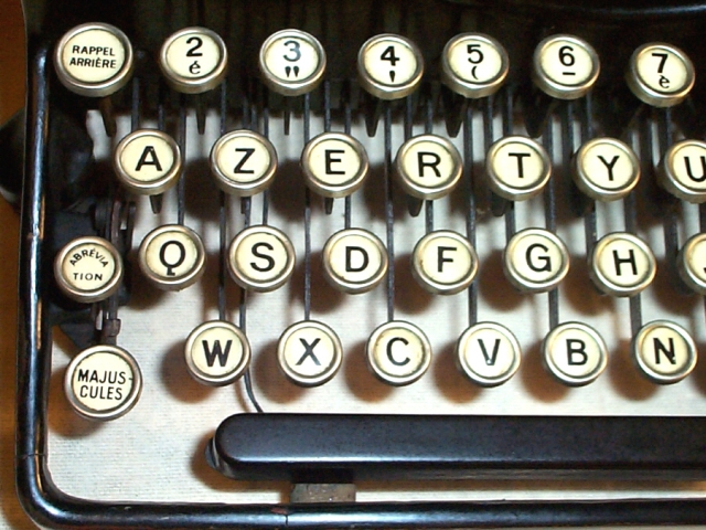 Französische Typenhebelmaschine mit Vorderaufschlag und einfacher Umschaltung.
