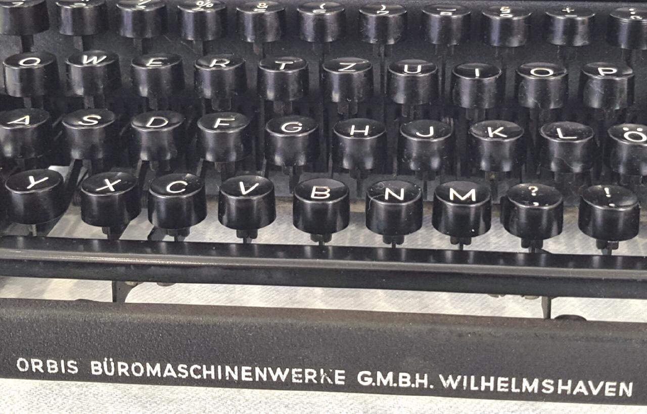 Maschinendaten: Bezeichnung: Orbis Technik: Typenhebelmaschine mit Vorderaufschlag und einfacher Umschaltung Erscheinungsjahr: 1948 Hersteller: Orbis Büromaschinenwerke GmbH, Wilhelmshaven Konstrukteur: Seriennummer: 5846 Baujahr: 1949