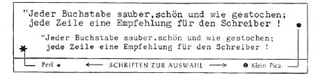 Abbildung unten: Schriften der Olympia "Modell Orbis" aus einem Werbeprospekt um 1949. |