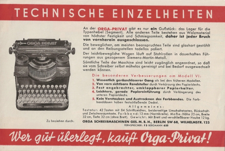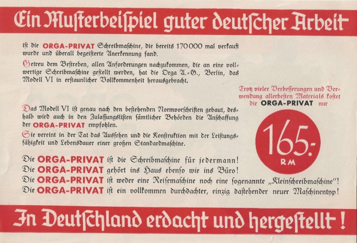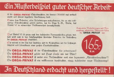 Werbeprospekt für die "Orga Privat"