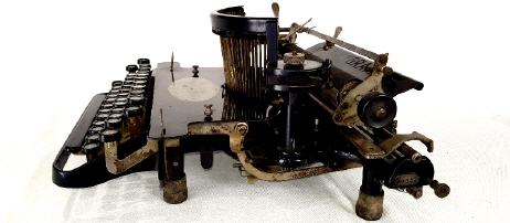 Auch die Polyphon-Musikwerke in Wahren bei Leipzig versuchten sich um 1900 an der Konstruktion einer Schreibmaschine. Die erste Maschine von 1903 (Abbildng rechts) glich mit ihrer zweireihigen halbrunden Tastatur und den aufrecht stehenden Typenhebeln einer Mischung aus Hammond und Bar-Lock. Die Zeichenfolge war die einer Idealtastatur.