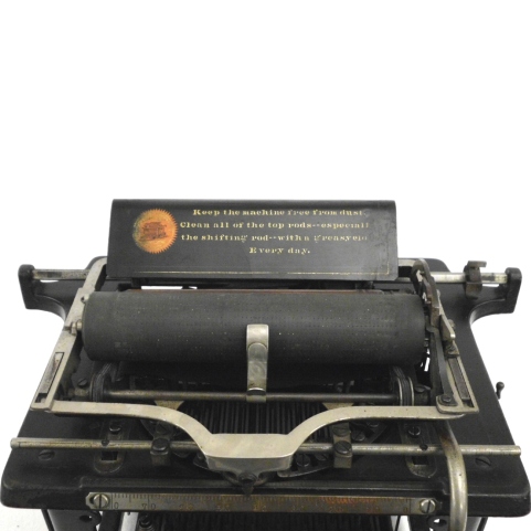 Die Schriftzeichen wurden von kreisförmig angeordneten Schwinghebeln von unten an die Walze geschlagen, wodurch die Schrift nicht sofort sichtbar war ("Blindschriftmaschine"). Um das Geschriebene sehen zu können, mußte der klappbare Wagen angehoben werden, was damals allerdings allgemein nicht als störend empfunden wurde (vgl. Abbildung rechts).