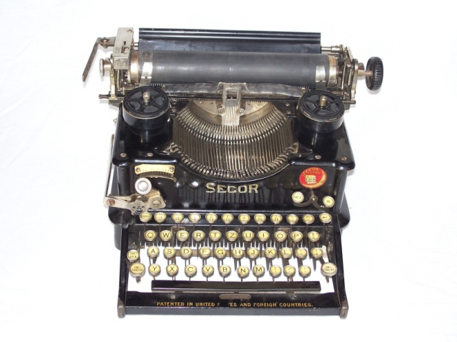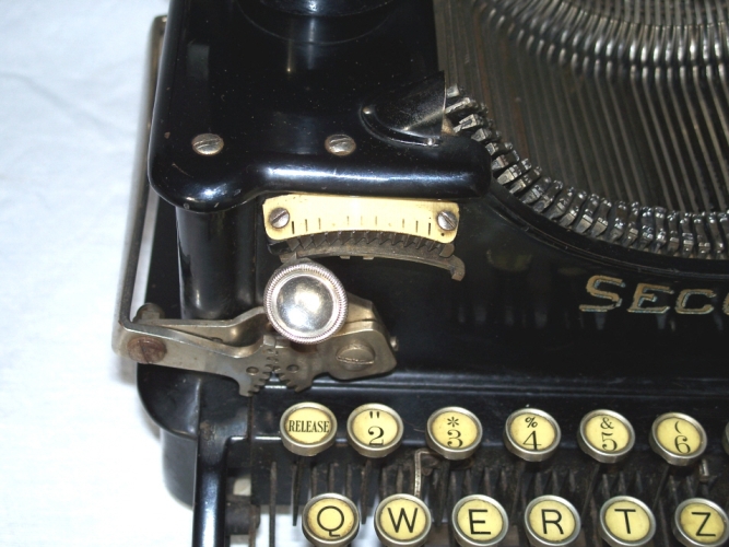 Maschinendaten: Bezeichnung: Secor Standard Visible Writing and Billing Machine (Modell 1) Technik: Typenhebelmaschine mit Vorderaufschlag und einfacher Umschaltung Besonderheiten: Eintaster-Dezimaltabulator Erscheinungsjahr: 1906 (?) Hersteller: Secor Typewriter Company, Derby, Conn., USA Konstrukteur: Jerome B. Secor Seriennummer: B 3892