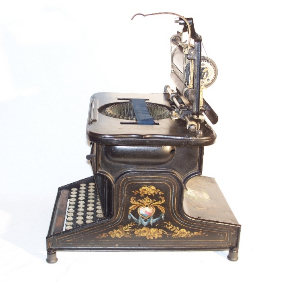 Maschinendaten: Bezeichnung: Sholes & Glidden Type Writer Technik: Typenhebelmaschine mit Unteraufschlag Besonderheiten: Urtastatur, Individuelle Verzierungen, modernisierte Version Erscheinungsjahr: 1873 Hersteller: Remington & Sons, Ilion, NY, USA Konstrukteure: Christopher Latham Sholes, Carlos Glidden, Samuel W. Soulé, Mathias Schwalbach Seriennummer: A 1212 Baujahr: 1875