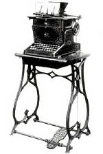 Die ersten Maschinen waren auf einem Nähmaschinentisch montiert und hatten ein Pedal, mit dessen Hilfe mit dem Fuß durch einen Seilzug die Wagenrückführung erfolgte (Abbildung rechts).