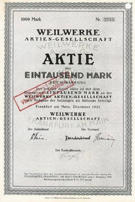 Aktie der Weilwerke AG über 1000 Mark
