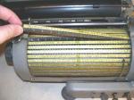 Die Typenstreifen waren in eine, vor der Walze befindliche, um eine horizontale Achse drehbare und nach rechts und links verschiebbare Vorrichtung eingehängt und bildeten die "Typentrommel". Auf der sichtbaren Seite der Typenstreifen waren die Zeichen zu sehen, die bei der Auswahl zum Abdruck kamen (die sich aber auf einem anderen, um 9 Zeilen versetzten Typenstreifen befanden).