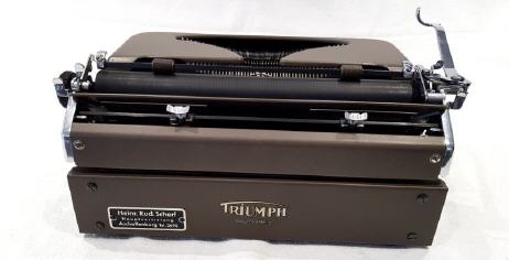 Maschinendaten: Bezeichnung: Triumph Durabel Technik: Typenhebelmaschine mit Vorderaufschlag und einfacher Umschaltung Besonderheiten: Erscheinungsjahr: 1951 Hersteller: Triumph Werke Nürnberg AG, Nürnberg Konstrukteur: Seriennummer: 718783 Baujahr: 1955