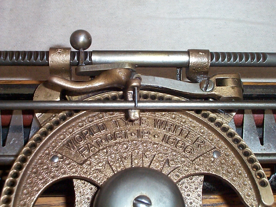 Maschinendaten: Bezeichnung: World 1 Technik: Zeigermaschine mit halbrunder Gummitypenplatte, Oberaufschlag Erscheinungsjahr: 1886 Hersteller: Typewriter Improvement Co., Boston, USA Konstrukteur: John Becker Seriennummer: ---