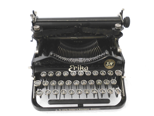 Maschinendaten: Bezeichnung: Erika 3 Technik: Typenhebelmaschine mit Vorderaufschlag und doppelter Umschaltung Besonderheiten: Zusammenklappbar (Folding) Erscheinungsjahr: 1923 Hersteller: A.G. vorm. Seidel & Naumann, Dresden Konstrukteure: F. S. Rosenberg, F. Rose Seriennummer: 73756 Baujahr: 1924