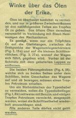 (Abbildungen rechts: Ausschnitte aus einer alten Gebrauchsanleitung zur "Erika")