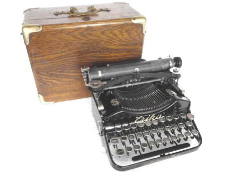 Die hier vorgestellte frühe "Erika" mit der Seriennummer 759 stammt aus dem Besitz eines "Prominentenzahnarztes", geboren um 1860, der in Heidelberg lebte und praktizierte. Der Heidelberger Zahnarzt, der Patienten bis England hatte, hatte eine der ersten "Erika", Baujahr 1910 erworben und zur Erledigung seiner Korrespondenz genutzt. Nach seinem Tod Ende der 1940er Jahre wurde diese "Erika" mehrmals vererbt und wanderte im Lauf der Zeit von Heidelberg nach München, dann nach Niederbayern und schließlich nach Greifswald in Mecklenburg-Vorpommern. Eine Besonderheit ist der schöne Holzkoffer mit Jugendstil-Beschlägen, in dem die Maschine untergebracht war.