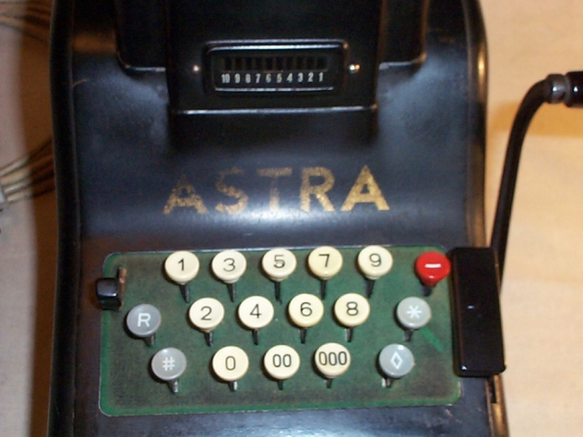 Die "Astra" gehörte zu den sog. "Zahnstangen-Maschinen" und hatte viele Vorzüge. So besaß sie eine erweiterte Zehnertastatur, die außer den Tasten für die Ziffern 0 bis 9 erstmals noch zusätzliche Tasten für "00" und "000" hatte ("Zwölfertastatur", siehe Abbildung rechts). Mit den zusätzlichen Tasten konnte eine höhere Eingabegeschwindigkeit erreicht werden.