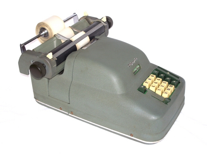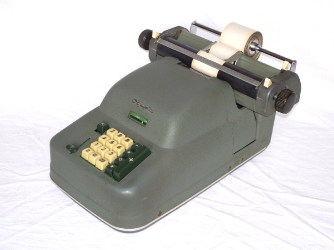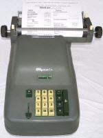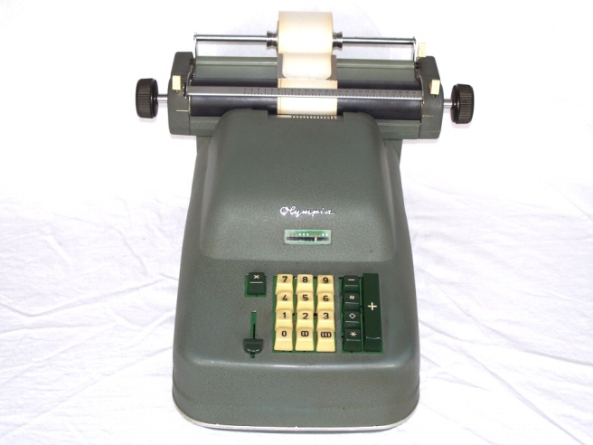Die hier vorgestellte Maschine wurde ab 1959 bis zur Einführung der EDV im Steuerberatungsbüro insbesondere zum Schreiben von Bilanzen verwendet. Die Beträge wurden mit der "Olympia" mit Hilfe ihres Schiebewagens in die entsprechenden Zeilen vorgedruckter Formulare gedruckt und gleichzeitig addiert. Obwohl jede Zeile mit der Walze per Hand einzeln eingestellt werden mußte, brachte diese Methode gegenüber dem bis dahin üblichen Schreiben mit der Schreibmaschine eine erhebliche Arbeitseinsparung, da das zeitaufwendige Nachrechnen entfiel. Zahlreiche Interessierte haben die neuartige "Olympia" damals im Büro besichtigt und dieses "Wunderwerk der Technik" bestaunt.