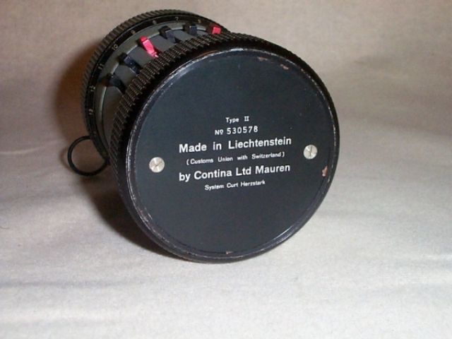 Maschinendaten: Bezeichnung: Curta II Technik: Staffelwalzenrechenmaschine Kapazität: (Stellen Einstellwerk/Zählwerk/Resultatwerk) 11 x 8 x 15 Erscheinungsjahr: 1954 (bis 1970) Hersteller: Contina Ltd. Mauren, Liechtenstein Seriennummer: 530578 Baujahr: 1962