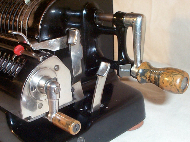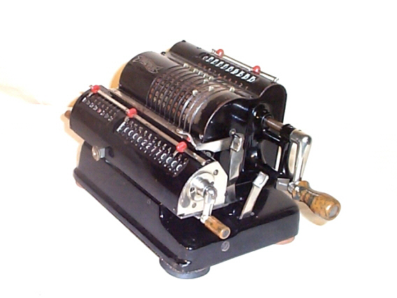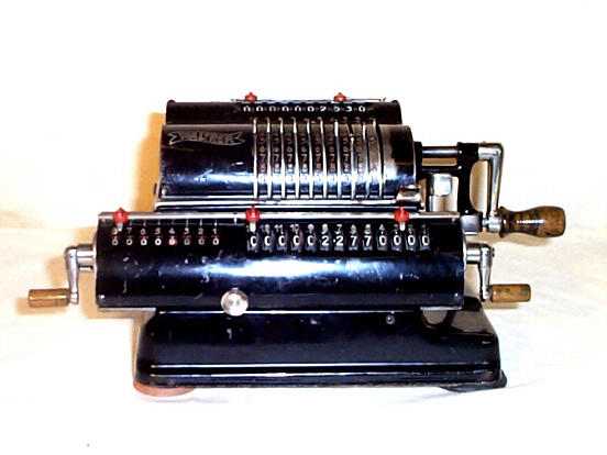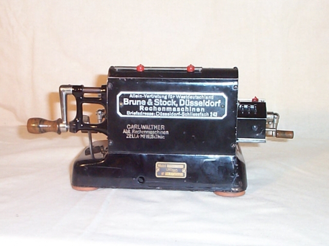 Sprossenradrechenmaschine, hergestellt von der Waffenfabrik Carl Walther in Zella-Mehlis in Thüringen.